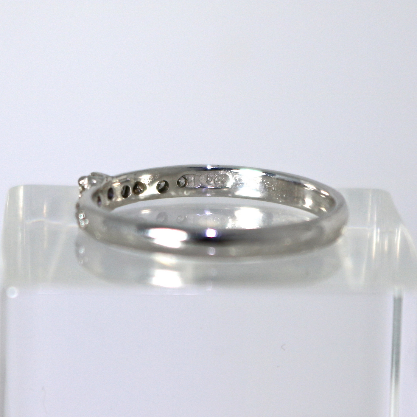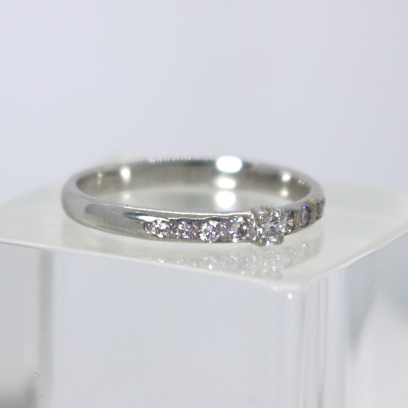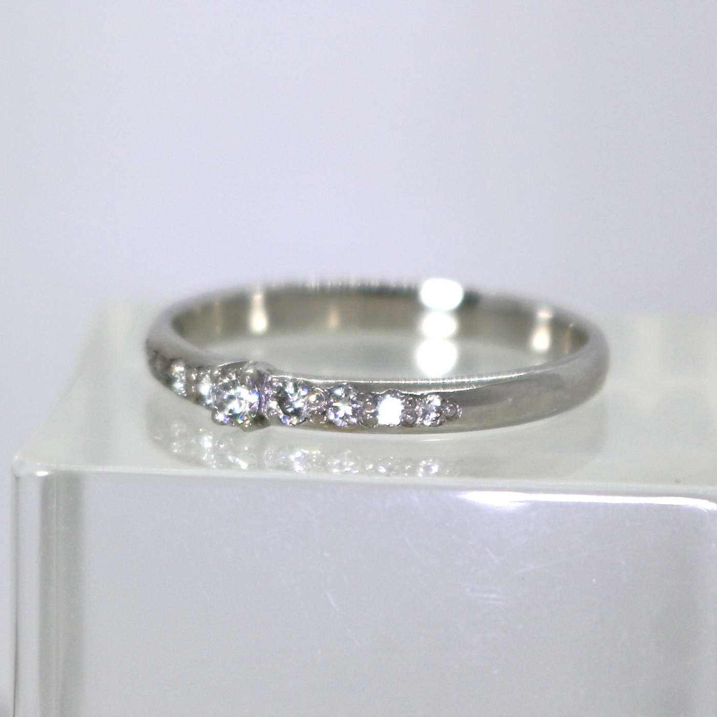 14 carat white gold row diamond ring has 1 x 0,05 ct, 2 x 0,03 ct, 2 x 0,02 ct and 4 x 0,01 ct vs – top wesselton quality diamonds; carat weight 0,20 altogether.