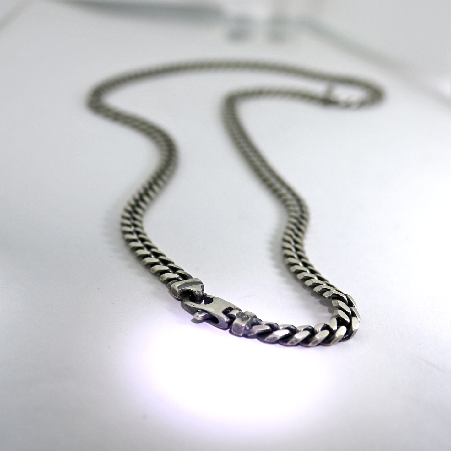 Hopeinen oksidoitu panssariketju 4.9 mm 50 cm on valmistettu Italiassa. Umpinaisen, mattaviimeistellyn, upean 925 pitoisen hopeaketjun pituus on 50 cm ja se painaa 33 grammaa. Hieno ja näyttävä lahja joka kestää jokapäiväistä käyttöä.